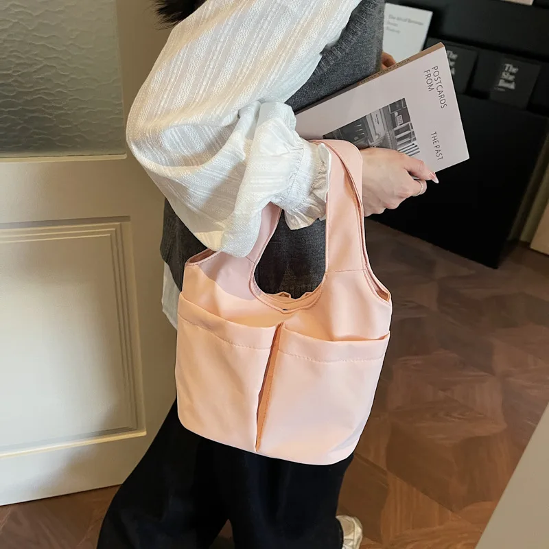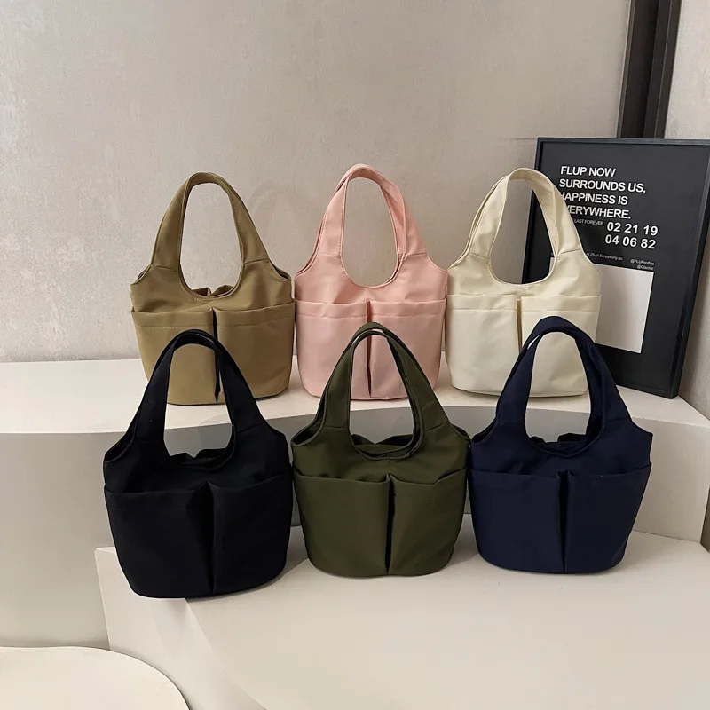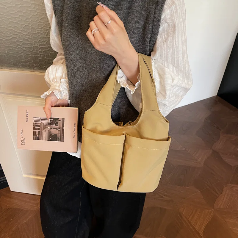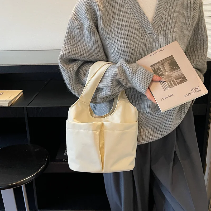 Underarm Folded Bucket Tote Bag Large Capacity Canvas Zipper Closure Chains Decoration England Style Multi-Pouch Design